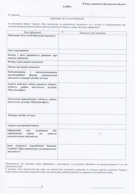 • Протокол засідання Ради адвокатів Волинської області № 11